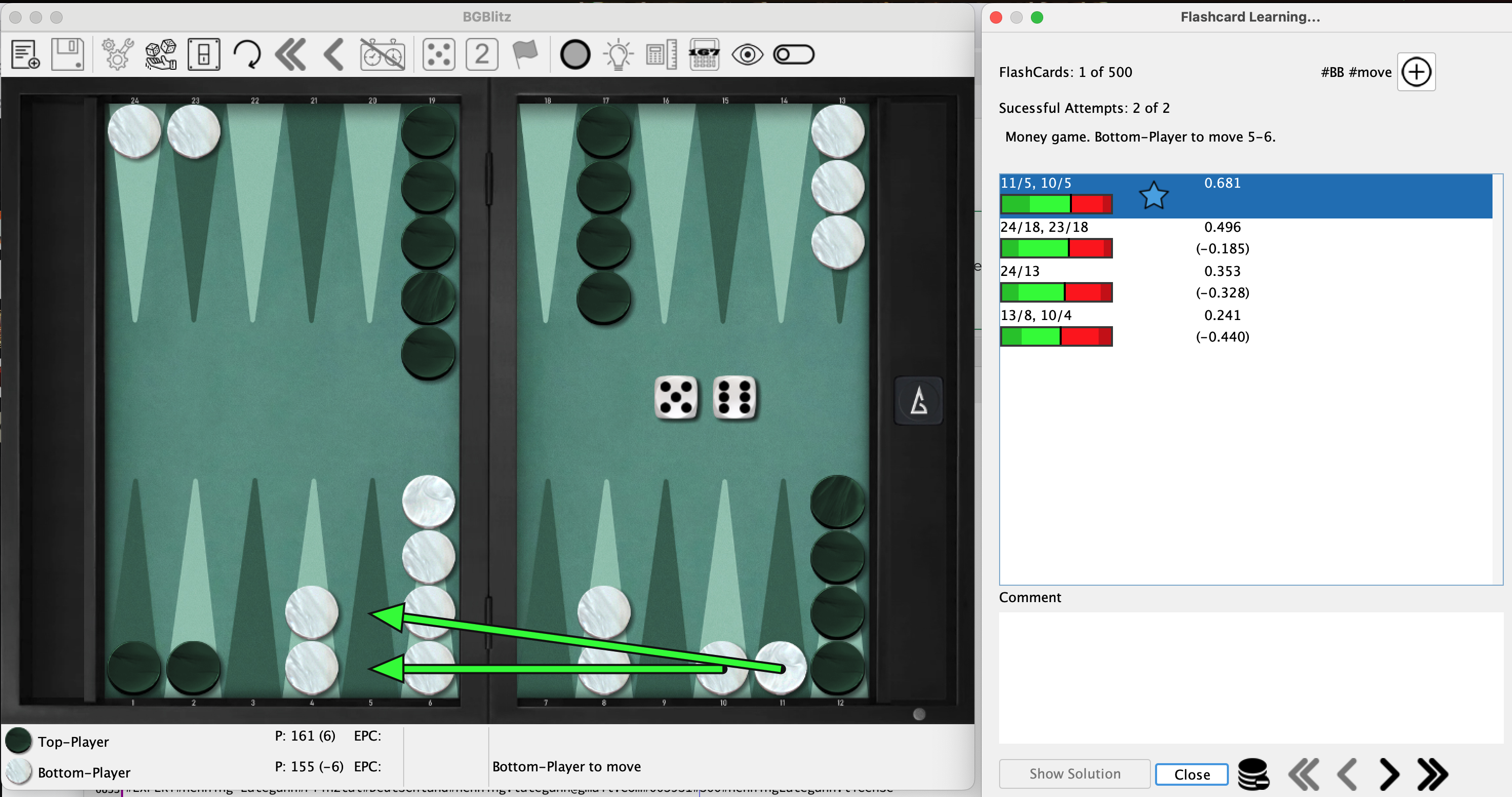 So how does the generation work? You can simply generate flash cards under "Best Moves" or "Position Evaluation" in the action menu, just as you can easily generate a card with the XGID in the "Performance Coach" menu. The most common way is probably via the Analyzer.