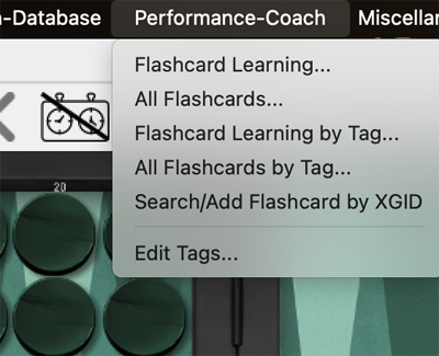 So how does the generation work? You can simply generate flash cards under "Best Moves" or "Position Evaluation" in the action menu, just as you can easily generate a card with the XGID in the "Performance Coach" menu. The most common way is probably via the Analyzer.
